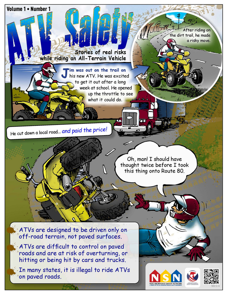 Click the links to access online ATV safety trainings and certificates. We also have ATV safety posters and graphics that are very helpful for visual education, especially for when teaching ATV safety to youth.